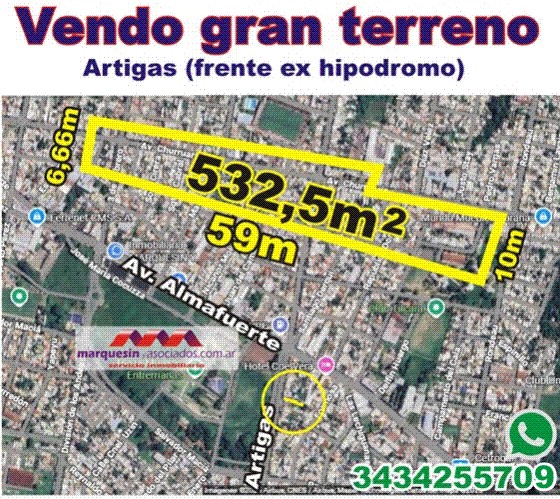 Vendo terreno calle Artigas frente ex hipódromo (Parana)