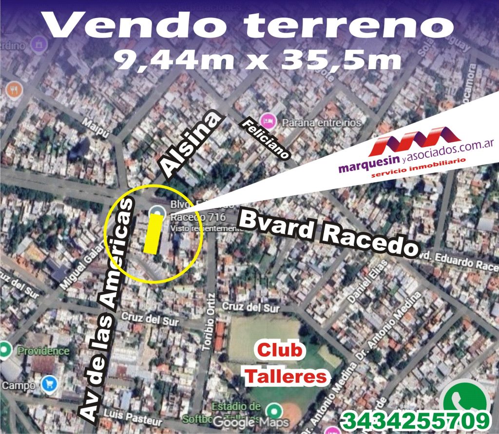 Vendo terreno sobre Bvar Racedo a mts de Av de las Américas (Parana)
